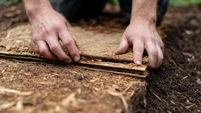 Ez a módszer nagymértékben csökkenti a gyomlálást, megőrzi a talaj nedvességét és elkerüli a vegyszerek használatát. A karton fokozatosan átnedvesedik, a talaj részévé válik, és nem zavarja meg annak természetes egyensúlyát.